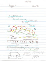 After reading Nita Penfold's "My Poem,"--in which she describes her poems as "not polite ladies," who "won't sit still"--we discussed Penfold's method of describing her poems as people with their own will. We also talked about her use of the title as also the first line of the poem. I then asked them to write their own poems, "My Poems," or alternately, "My Words" (which could extend into other areas of language). These entertaining poems resulted; I felt like they were integrating a lot of the various imagery and tools we've experimented with this year.
